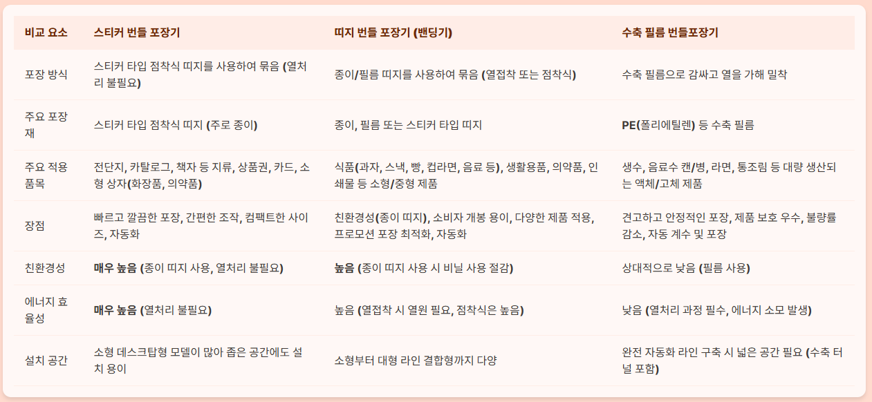 혹시 포장하려는 제품의 종류나 예상 생산량과 같은 구체적인 정보를 알려주시면, 더 적합한 번들포장기의 종류나 특징에 대해 추가적인 정보를 제공해 드릴 수 있습니다.
