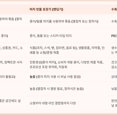 띠(밴드)를 사용하여 제품을 묶으며, 친환경적인 포장이 가능합니다. (예: 식품, 생활용품)