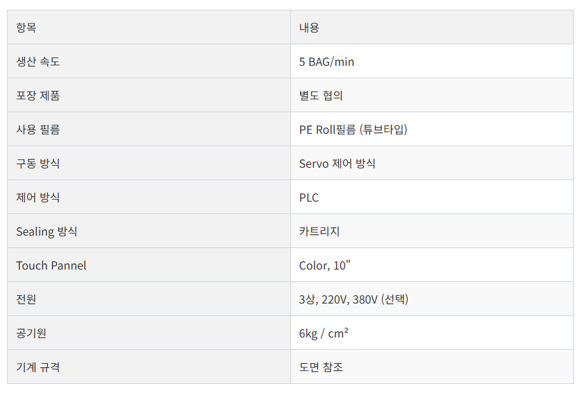 PE필름 실링에 적합한 Impulse실링 방식 채택 (Sealing부분이 깨끗함)